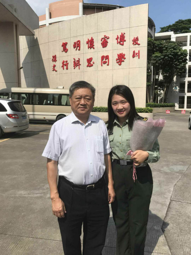 退伍返校后,叶晓婷担任了2016级法学专业C班的学习委员,这也就意味着她的肩上担负了更多的责任,同时培养了她作为学生干部的强烈责任感和奉献意识。此外,她积极主动参与学校保卫处开展的国旗护卫队的训练,并在广东省国旗护卫队的比赛中荣获二等奖,真正做到了“退伍不褪色”。