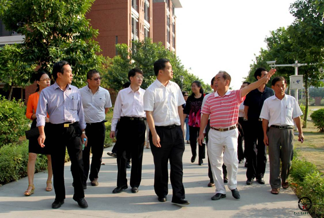 图2 朱默河副秘书长(右二)一行参观郁郁葱葱的美丽校园