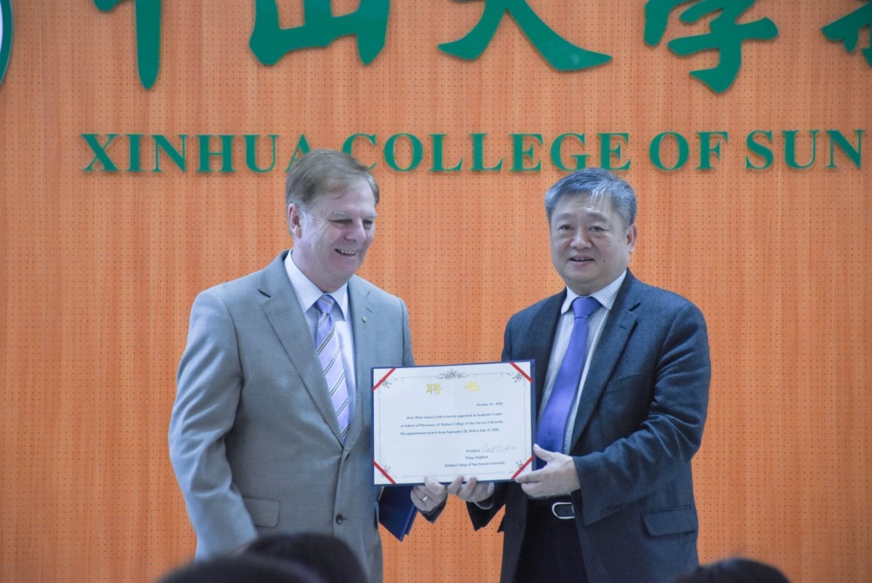 王校长表示,Little教授担任药学院首席教授期间,每年多次往返于中大新华和昆士兰大学,为我校师生带来精彩的讲座及授课,在科研和教学上积极指导青年教师,发表多篇高水平学术论文,并曾于2017年带领我校药学院在广州市成功举办第一届中澳临床药学论坛。我校药学院近几年就业情况越来越好,希望Little教授能继续给予指导,促进药学院发展,同时希望药学院继续加强与Little教授的密切联系,虚心向专家教授学习请教,组建优秀的药学科研团队,培养更多优秀的药学人才,服务社会,报效祖国。