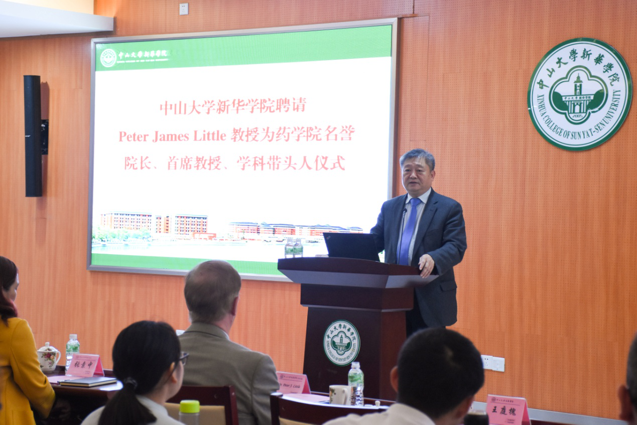 3月21日下午,中山大学新华学院(以下简称“我校”)聘请Peter James Little教授为药学院名誉院长、首席教授、学科带头人仪式在广州校区第一会议室举行。王庭槐校长出席仪式为Peter James Little教授颁发聘书。