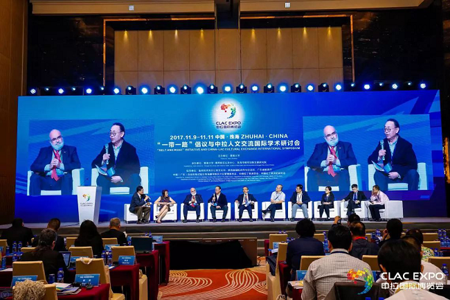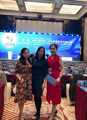 11月10日,在中国-拉美国际博览会举办期间,由暨南大学主办,国务院侨务办公室文化司、教育部国际合作与交流司、广东省教育厅、中国(广东)自由贸易试验区珠海横琴新区片区管理委员会、中国拉丁美洲学会、中国拉丁美洲历史研究会指导,暨南大学-横琴新区拉美中心、珠海市横琴创新发展研究院承办的“一带一路”倡议与中拉人文交流国际学术研讨会在珠海国际会展中心成功举办。此次研讨会有来自阿根廷、智利、巴西、美国、古巴、意大利等国内外约60名拉美研究学术界的专家参与,约40名专家学者在大会上发言。我校外国语学院葡萄牙语专业负责人韩天歌、西班牙语专业负责人林杏贞、西班牙语专职教师谢杭航参加了此次研讨会。