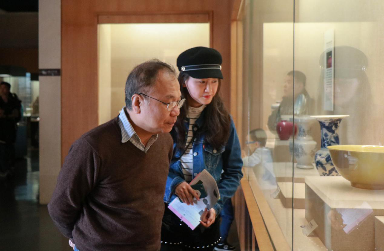 胡教授与钟慧美老师参观陶瓷馆藏品