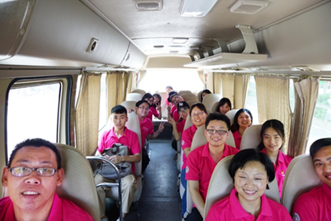 管理学院党支部成员乘坐校车前往东莞市科技馆