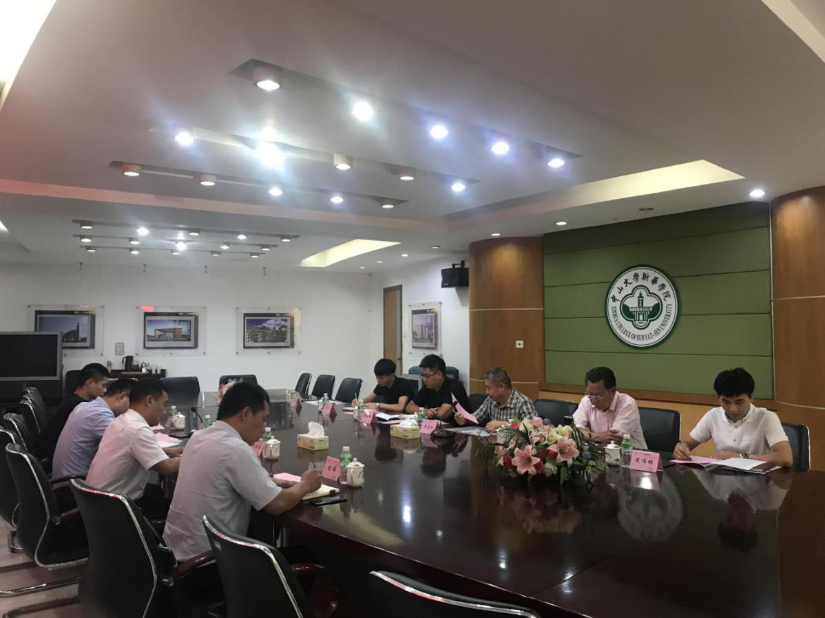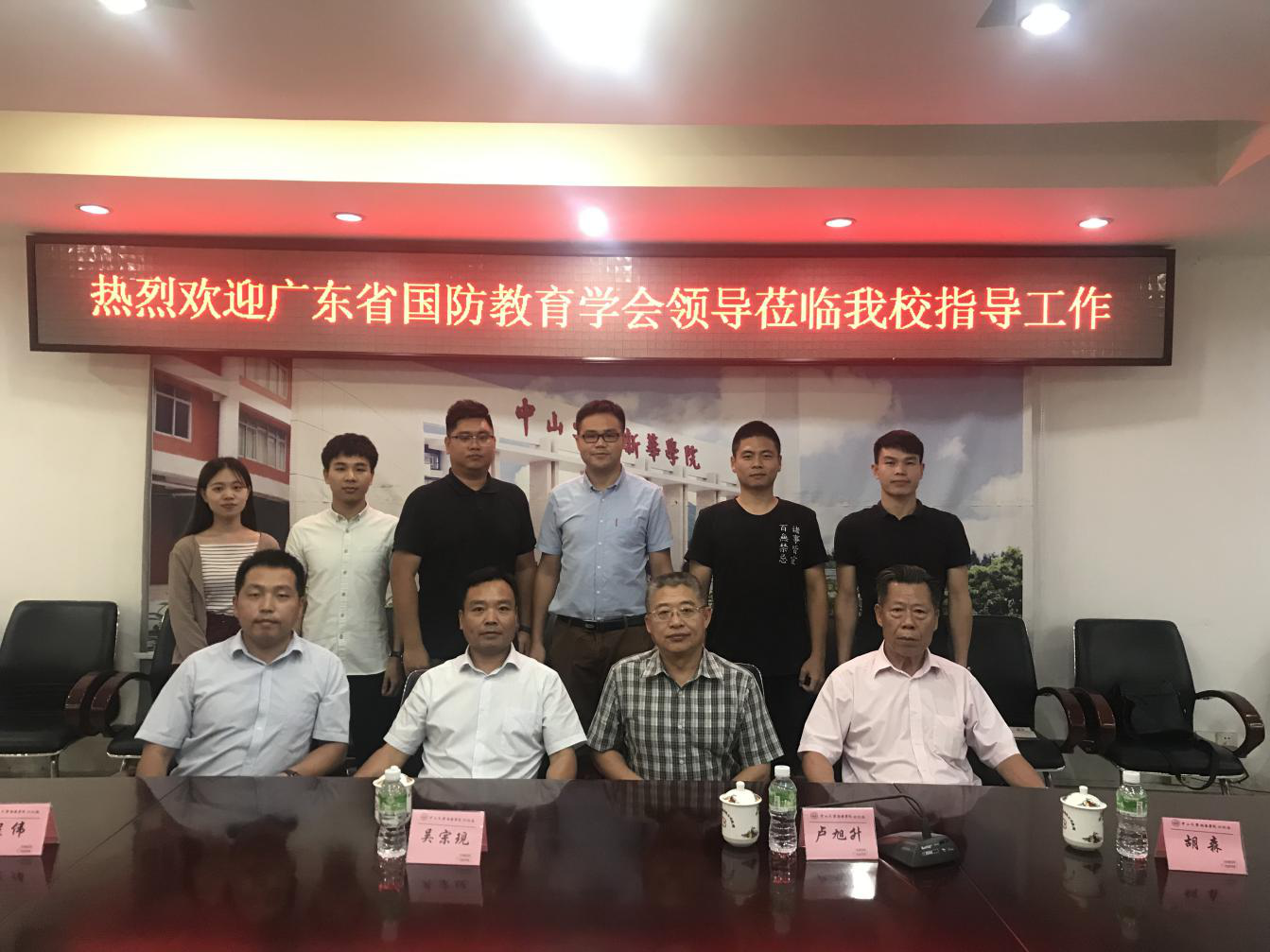 6月18日下午,广东省国防学会吴宗现秘书长、课题办主任卢旭升、广东省全民国防教育中心训练部部长程伟、胡森老师一行四人来访中山大学新华学院开展国防教育调研工作。我校党委人民武装部黄志刚副部长、罗立和副部长,保卫处廖石明科长、谢亮副科长,公共基础教学研究部办公室副主任戴伟雄等接待并与来宾座谈交流。会议由黄志刚副部长主持。