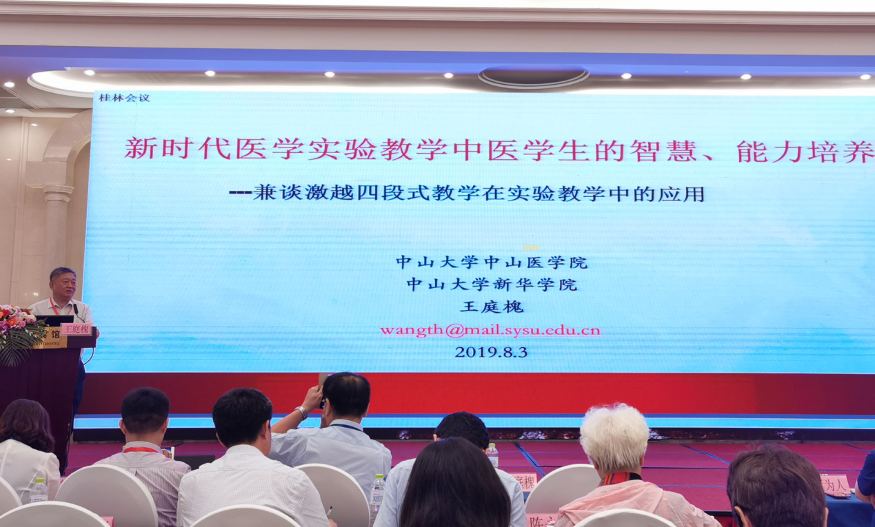 8月2日至5日,2019年高校基础医学教学研讨会暨高校基础医学形态学实验室主任联席会第十二次会议在桂林市举行,中山大学新华学院校长、中山大学生理学教授王庭槐应邀出席会议并作《新时代医学实验教学中医学生的智慧、能力培养——兼谈激越四段式教学在实验教学中的应用》的专题报告。