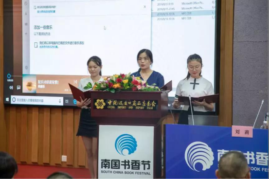 在“2019南国书香节暨羊城书展”期间,张彦老师被选为教师代表参加中共中央党校出版社向中大新华赠送《习近平在正定》活动,现场带领学生深情并茂地朗诵《我将无我,不负人民》原创诗歌,表达了对习近平总书记“我将无我,不负人民”精神的崇高敬意,传递了坚守中大新华坚持立德树人、办好人民满意的教育、培育德智体美劳全面发展的社会主义建设者和接班人使命的信心。