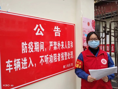刘琪同学在南二社区担任疫情防控工作志愿者