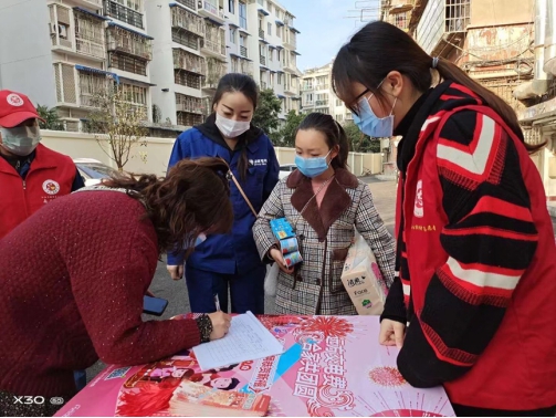 刘琪同学向社区群众讲解防疫政策和常识宣讲