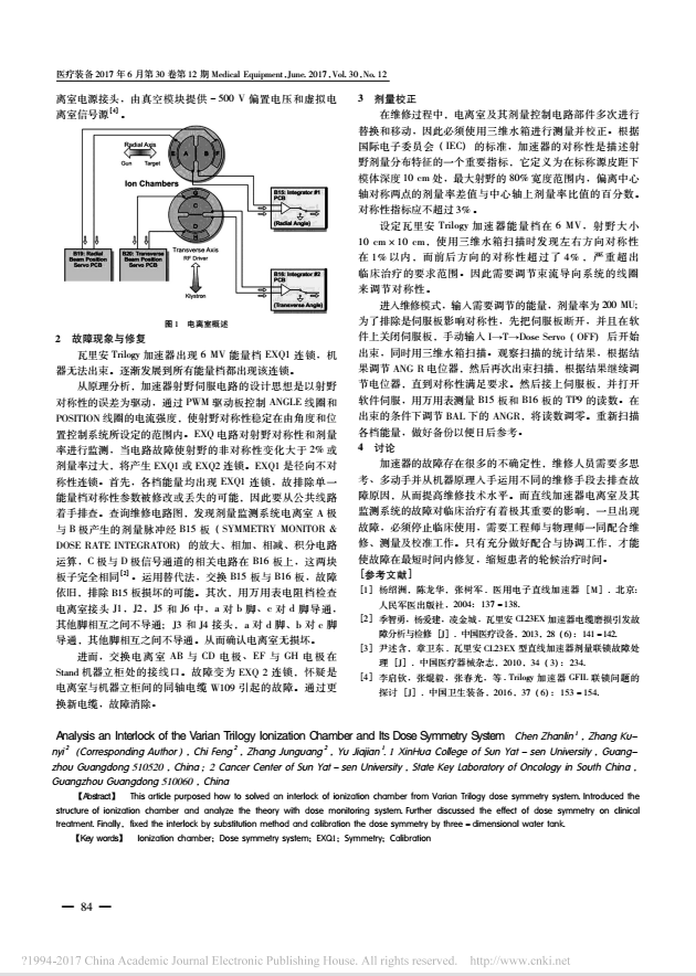 作为生物医学工程的一个前沿研究方向,精确放射治疗技术在肿瘤治疗中承担着重要作用。医用电子直线加速器是实现精确放疗的工程学基础。医用电子直线加速器复杂而且精密,涉及电子、机械、真空、高压、剂量、水冷、自动控制、通信、计算机、网络等技术,任何一个方面的因素异常均可能造成加速器不能正常治疗。医用加速器在设计时考虑了如何保证病人治疗安全和准确,同时也设计了大量的防护措施保证设备自身的安全,因此当医用加速器出现故障时通常会通过医用加速器的连锁来反馈故障。