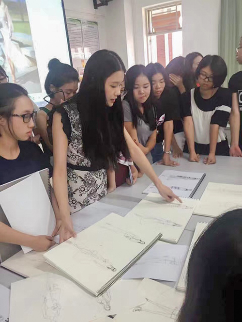 谈及三年执教来的感受,邵老师认为:创新的教学方式往往能带来更好的教学效果。她举例说,比如服装的表现技法这门课,中国传统教学模式都是给学生一个图参考,让学生照着图画。但是邵老师在教学上则汲取了国外的教学模式,找一个班上的同学当模特,给他打扮得很时尚,每次都呈现不一样的风格,如街头风,淑女风、摇滚或者派对装,让学生相互之间来画,这样不但提高了学生积极性,还强化了实操能力。