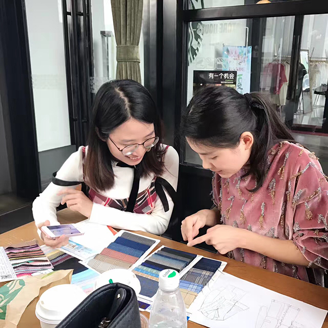 此外,邵老师还会带学生去做市场考察,比如去太古汇里的高档时装店或者批发行等地方,深入了解市场情况,观察品牌、流行趋势、服装工艺等等。邵老师认为,学生因为经常在网络上看图片,并不能真正摸到面料,看不到制作的细节、工艺,只有真正到了市场,才能真实地去感受到市场的流行趋势。