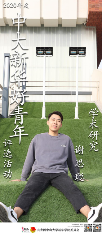 谢思聪是一名具备丰富学术科研经历,同时具备强烈社会责任感的优秀青年。在思想意识层面上先进,政治立场坚定。在社会实践中,有担当、有责任感,无私奉献地去帮助他人。在学术科研中,为实现自己的目标、自己的事业,他会去默默研究,去攻克难关,去不懈奋斗。