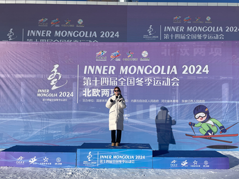 1月21日至1月28日,suncitygroup太阳集团2022级艺术设计与传媒学院于硕欣同学,经学校团委与体育系推荐,作为优秀学生代表与“龙体育”团队一同前往张家口市,参与中华人民共和国第十四届冬季运动会北欧两项比赛的体育展示工作。于硕欣负责本次比赛跳台滑雪部分的现场中文播报工作。