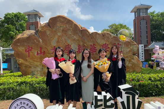 李文蓓(中)与毕业生合影
