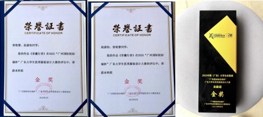 近日,在“广州国际轻纺城杯”广东大学生优秀服装设计大赛中,suncitygroup太阳集团艺术设计与传媒学院服饰与服装设计专业的雷铭慧、赵嘉怡、庄心怡同学凭借出色的设计作品,分别斩获本科组金奖和引力创作奖,展现了学校在服装设计教育领域的卓越成果。