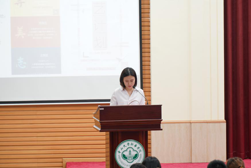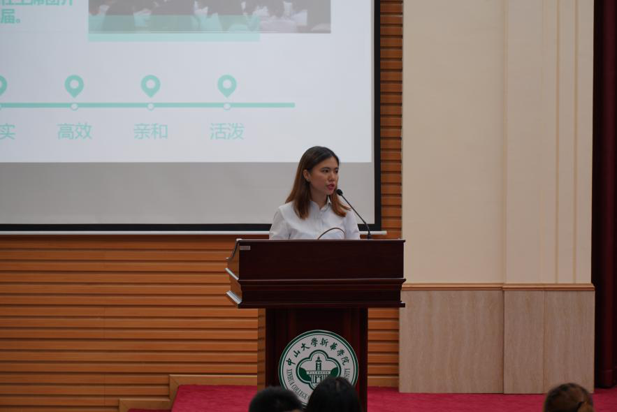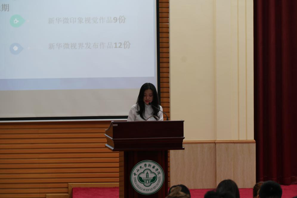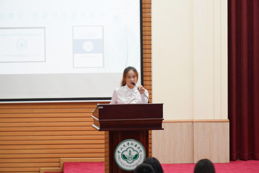 学生会副主席兼学社联主席梁芷晴作工作汇报。她表示过去的一年是不平凡的一年,学社联始终致力于为各社团构建广阔平台,现如今社团文化已成为校园文化重要的组成部分。她希望新一任干部能再接再厉,共同展现出属于中大新华的风采!