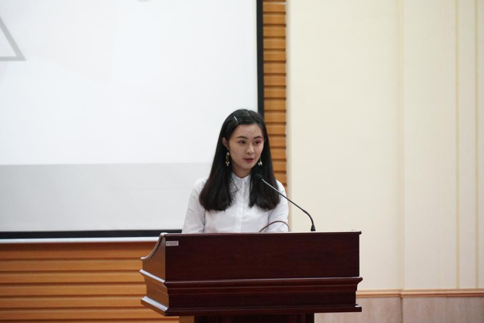 记者站副站长王楷莉代学生会副主席兼记者站站长黎佩欣作发言