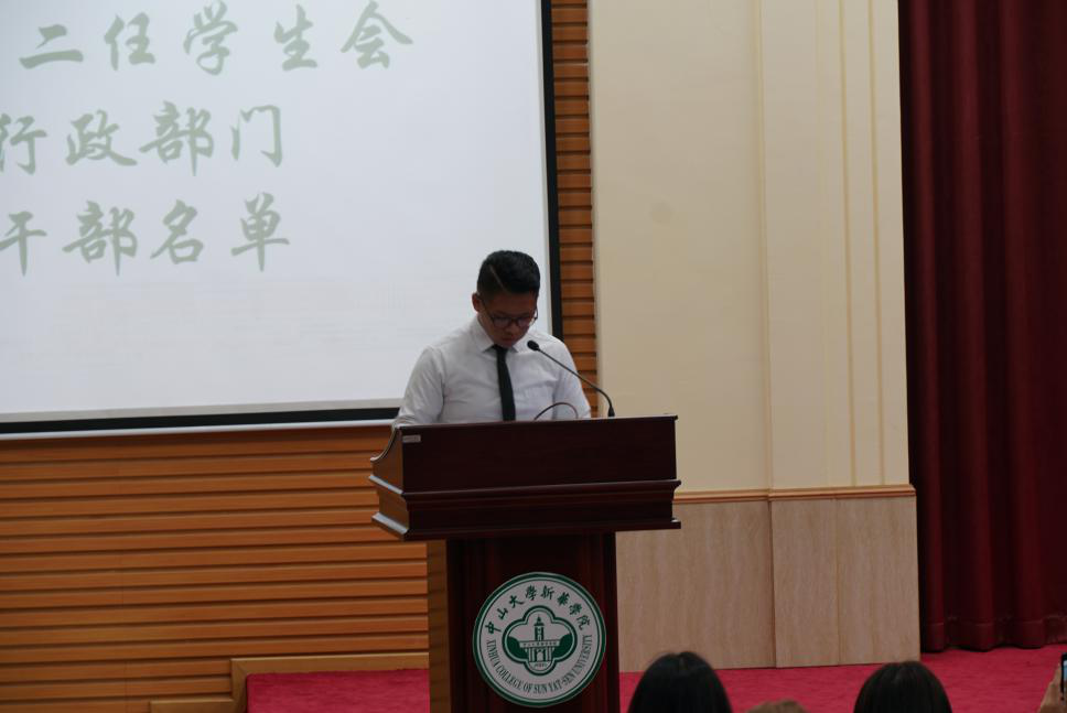 第十届第一任学生会副主席廖泽纬公布了中山大学新华学院第十届第二任学生会学生干部名单。
