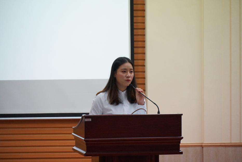 学生会副主席兼记者站站长蔡露总结了记者站一学年以来所取得的各项成绩,记者站获评“广东省十佳校媒”不仅是一份荣誉也是一份前行的动力,希望新一任干部能够延续荣誉,不忘初心,继续前进,交出令学校满意的新答卷!