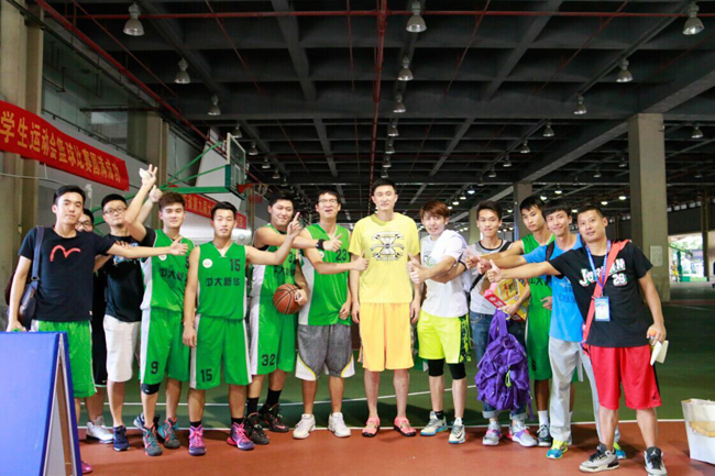 我院男篮与前国家男篮队员,现广东东莞银行主教练杜锋合影