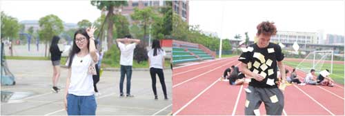 活动采取人员混编模式,由学生会各部门部长对干事们重新分组,每支队伍8人,每个小组设计出自己的的队名与口号,组内队员共同完成“地雷战”、“传数字”、“甩步机”和“两人三足”四个项目。