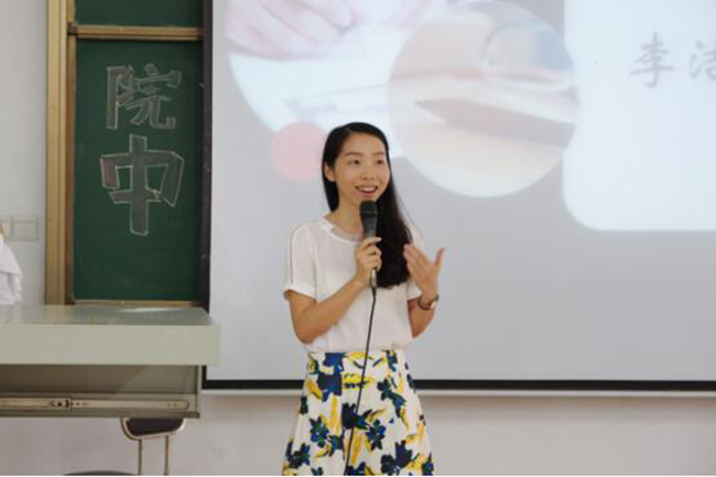 中大新华记者站中文系分站指导老师李洁玲讲话