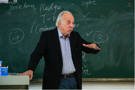 11月6日,著名国际金融学家、伦敦政治经济学院教授、国际经济学家、中山大学新华学院经济与贸易学院金融工程专业首席教授、投资学专业学科带头人Prof. Ron Anderson走进2017级金融工程专业C班,为学生开设金融英语专业课堂。