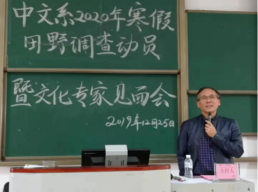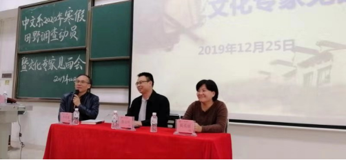 本次田野调查动员暨文化专家见面会由中文系与中山大学中国非物质文化遗产研究中心新华学院站共同举办。李铭建副主任介绍了寒假社会调查的意义,他指出,“同学们应亲身体验和感受活动的意义,以大学生的眼光重新认识自己的家乡,审视自己最熟悉的人和事物,留住乡愁,记录家乡的情怀和情结。”