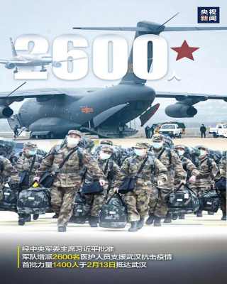 人民有难,军人当先。自新冠肺炎疫情发生以来,中共中央总书记、国家主席、中央军委主席习近平对军队做好新型冠状病毒感染的肺炎疫情防控工作作出重要指示:“全军要在党中央和中央军委统一指挥下,牢记人民军队宗旨,闻令而动,勇挑重担,敢打硬仗,积极支援地方疫情防控。我军承担武汉火神山医院医疗救治任务是党和人民的高度信任,要加强组织领导、密切军地协同、坚持科学施治、搞好自身防护,不负重托,不辱使命。”