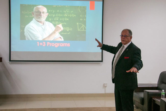 KEVIN T. BRADY博士介绍了美国海恩环球教育集团的背景及目前开展的主要业务,包括国际学校开发、STEAM 整合学习、A.P.学习证书、IB认证、人工智能和联合国与全球政策研究等课程。