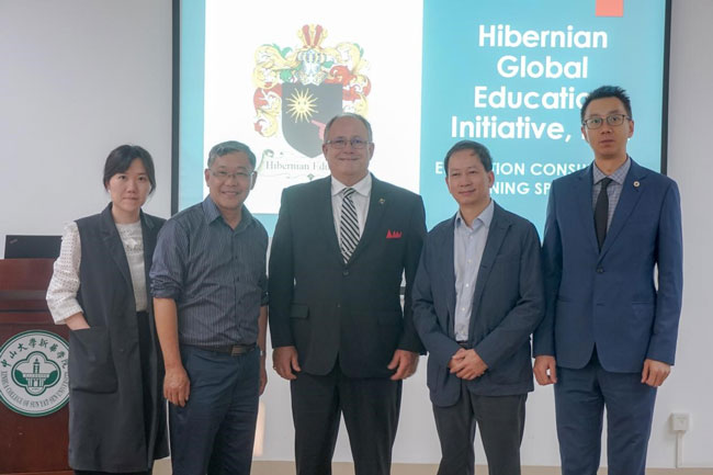 11月10日, 美国海恩环球教育集团Hibernian Global Education创始人、董事长兼首席执行官KEVIN T. BRADY 博士与海恩环球教育集团执行副总裁Sarina Ko一行莅临中山大学新华学院(以下简称“我校”),洽谈对外交流项目合作事宜。我校董事长刘荣海先生、国际学院代表接待了来宾,双方进行了深入座谈。