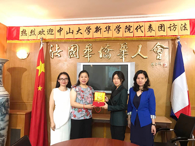 7月21日,中山大学新华学院刘婉莉校长助理,外国语学院廖益清执行院长、欧衍伽老师、李文蓓老师应邀拜访法国华侨华人会并为法国华侨华人送上诚挚问候。当天上午,法国华侨华人会主席秘书杜晓霖女士热情接待了刘婉莉一行,双方展开友好座谈交流,从教育、工作等各方面了解法国华侨华人的生活现状并探讨未来发展。