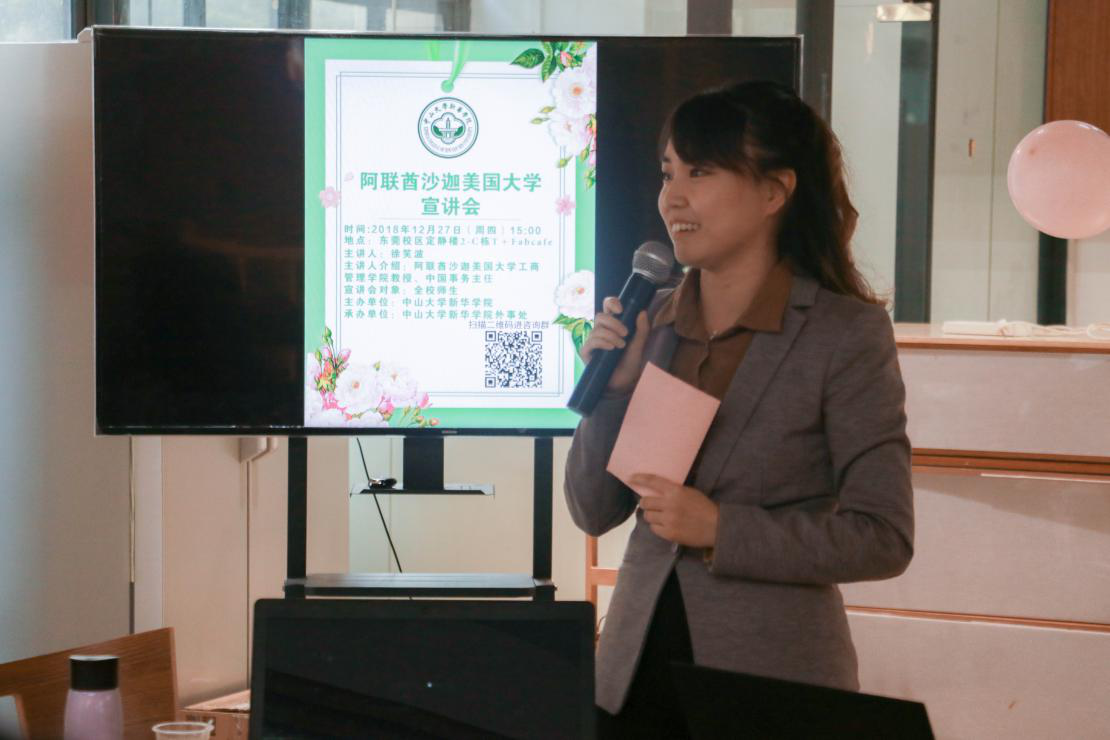 12月27日,由中山大学新华学院(以下简称“我校”)主办,外事处承办的阿联酋沙迦美国大学留学项目宣讲会在我校东莞校区定静楼2C栋T+Tabcafe顺利举行。