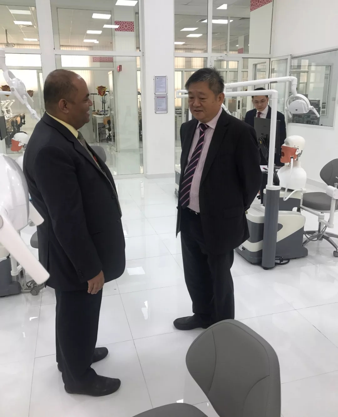 我校代表团在实验中心主任Dr.PK Menon陪同下,参观了该校医学院的模拟诊所、模拟手术室、人体解剖实验室,药学院的模拟门诊药房、高效液相分析室、基因组学实验室、蛋白组学实验室、代谢组学实验室、糖尿病实 验室、冠脉疾病研究室、组织病理学实验室及微生物与免疫实验室等,口腔学院,考试中心等教学实验设施环境。