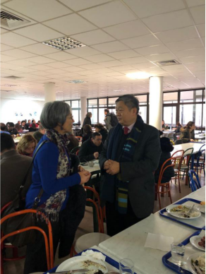 我校代表团来到里斯本新大学餐厅参观调研(左起:里斯本新大学院人文社科院副院长Antónia Coutinho、我校校长王庭槐)