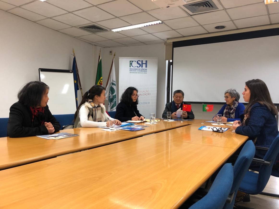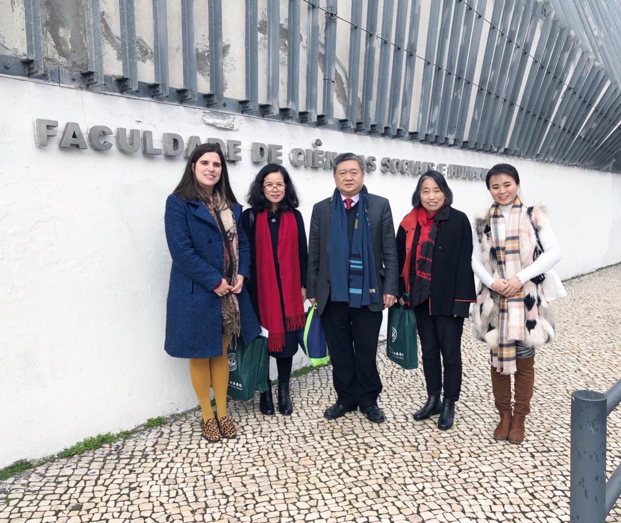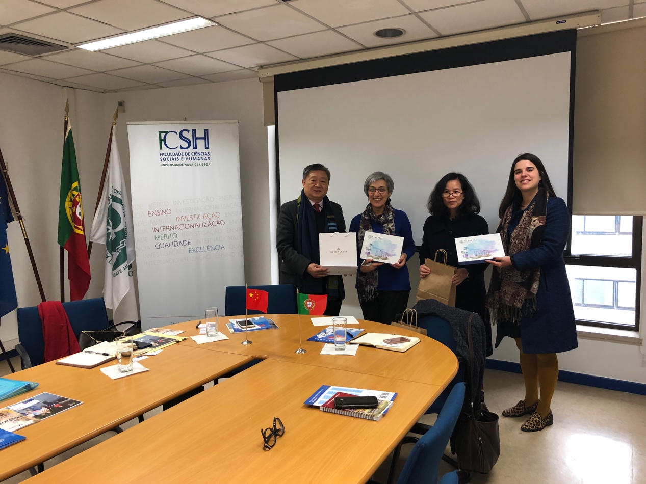 1月22日上午,王庭槐校长率中山大学新华学院代表团(以下简称我校代表团)应邀访问了葡萄牙里斯本新大学洽谈教育交流合作项目。里斯本新大学人文社科院副院长Antónia Coutinho、国际对外事务办公处Sara Salvaterra Recharte女士,以及国家主席习近平在葡萄牙《新闻日报》发表的题为《跨越时空的友谊 面向未来的伙伴》的署名文章中提及的王锁瑛博士等热情接待了我校代表团。