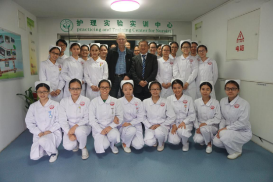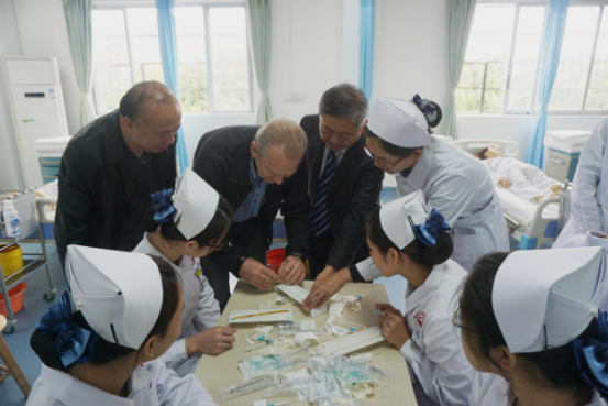 王庭槐校长与Henrik Ahn教授指导护理专业学生静脉注射操作