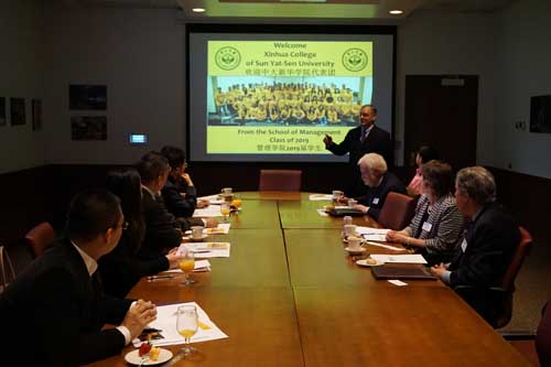 洽谈会上,王院长指出:“两校在办学定位、人才培养目标等方面有很多共同的愿景,中大新华提出‘德才兼备、知行合一’的人才培养目标,拿大的宗旨是‘培养学生实现其个人和职业发展目标的能力和信心’,这是我们共同合作的基础。希望双方通过努力共同培养商科管理类具有国际视野的复合型应用型优秀人才。”