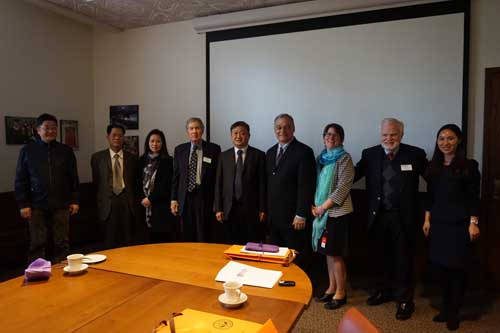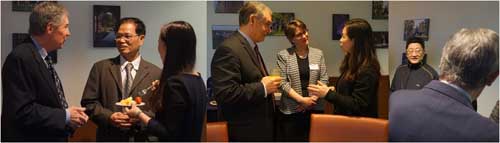 茶歇时,韦主任(左)、廖主任(中)、袁主任(右)与拿大代表亲切交流