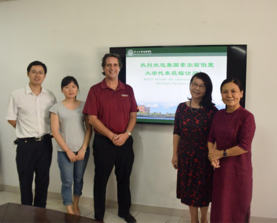 9月24日-25日,美国索尔兹伯里大学副教务长助理及国际教育部主任Dr. Brian Stiegler到访中山大学新华学院洽谈新项目,在已有合作基础上深化合作探讨合作新模式。我校护理学院执行院长王秀岚教授、外国语学院执行院长廖益清教授及外事处副处长邱易安教授会见来访人员。