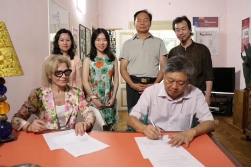 中山大学新华学院代表团在国际艺术学院edda silvsestri院长和留学生姚岚的陪同下参观了罗马国际艺术学院的音乐教室等相关设施设备,并签署中山大学新华学院与罗马国际艺术学院合作备忘录,罗马国际艺术学院将协助中山大学新华学院音乐系的开设和音乐教育专业的设置,以及语言教育、学生互换、开展共同研究和举办学术研讨会等。