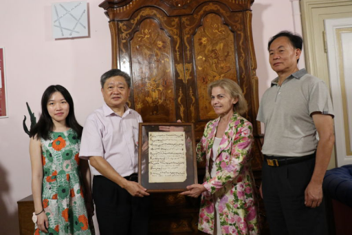 罗马国际艺术学院院长edda silvestri赠予了王庭槐校长意大利中世纪格里高利圣咏手稿。edda silvestri表示,之所以要将这么贵重的手稿赠送给王校长是因为:这张手稿世界上只有一份,要送给值得敬佩的人!王校长对此深表谢意,祝愿两校情谊绵长、共赢发展,相信此行将为两校国际教育合作开启新篇章。