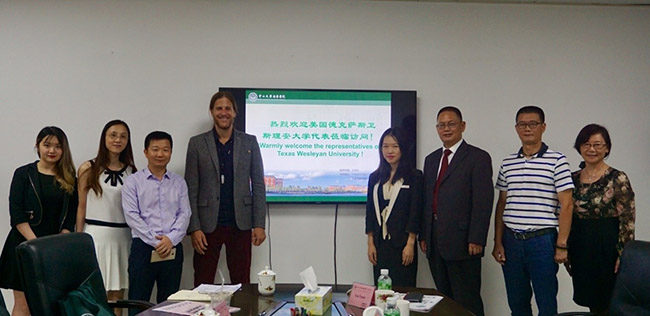 校长助理刘婉莉对来宾表示热烈欢迎并介绍了我校基本情况,希望两校早日建成友好合作关系。她鼓励双方积极探讨合作的可能性,在双方互信基础上开展多学科、多层次的合作项目,如会计类专业、西班牙语专业2+2、2+3、3+2学生联合培养项目、短期师生交流互派项目等,为我校学生提供更多的深造渠道。同时,她指出我校积极响应国家“一带一路”倡议,计划面向“一带一路”沿线国家招收国际留学生来校交流学习,非常欢迎德克萨斯卫斯理安大学派学生来我校学习,我校可为其提供优质的本科学历教育和非学历教育。
