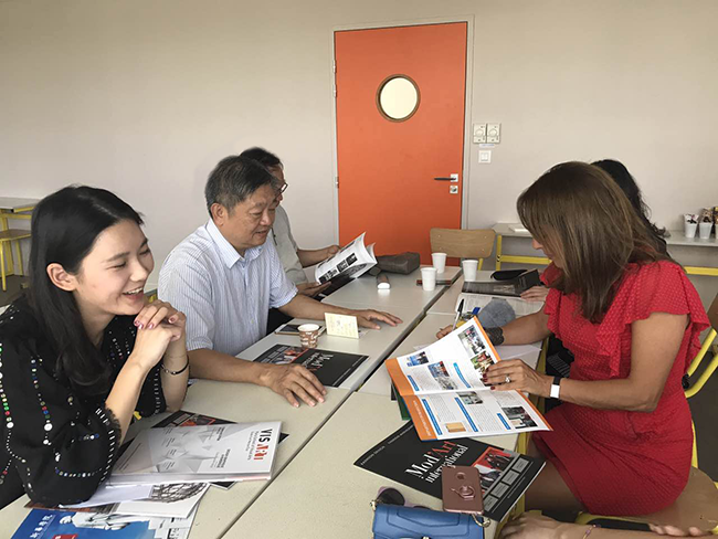 Mod’Art校长Annabel Bismuth热烈欢迎王校长一行,随即带代表团参观了Mod’Art校区、电脑教室、立体剪裁室、艺术设计课教室和时尚买手大教室等,与我校代表一起探讨创新与多元化教育合作模式,共享中欧教育资源等话题,并达成多项共识。