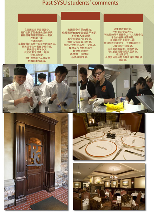 合作模式:在我院就读2.5学年、在俄克拉荷马州立大学就读1.5学年,学习结束后根据两校学分转换规定,互换学分,学生修满两校所需学分并符合颁发学位条例要求者,将获得中山大学新华学院颁发的毕业证书、学位证书和俄克拉荷马州立大学颁发的学位证书。就读期间可获取美国餐旅企业实习机会,为就业接轨铺路。表现优秀者,可免考英文继续留OSU攻读硕、博士学位。