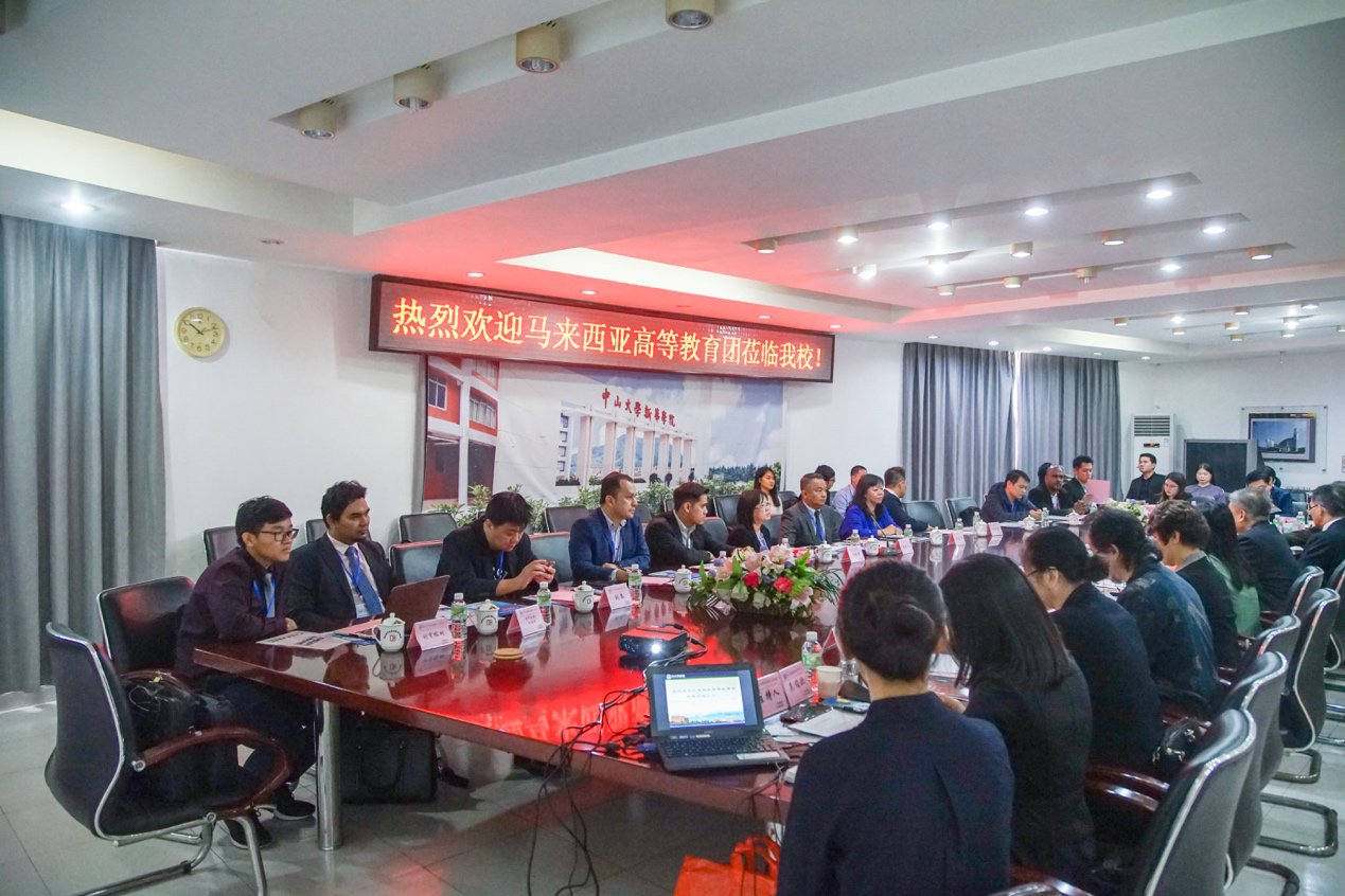 11月22日,马来西亚高等教育部中国司主任希尔米(Helmy Bin Sulaiman)率领马来西亚国民大学、吉隆坡大学、思特雅大学、马来亚-威尔士国际大学、英迪国际大学、泰莱大学、莱佛士大学依斯干达等八所高校的相关部门负责人来访我校洽谈合作。