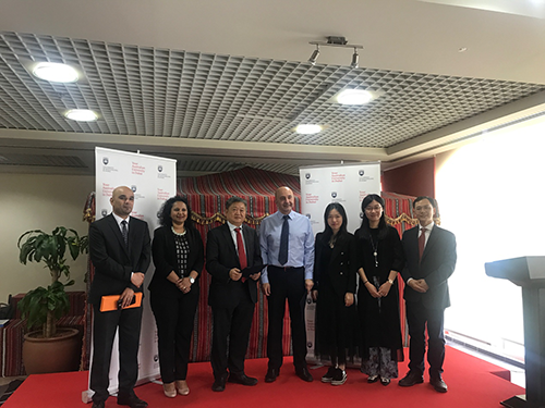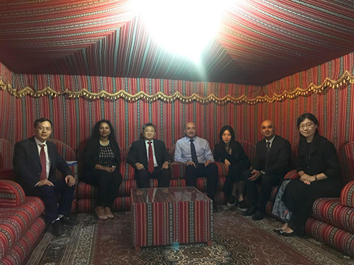 4月24日下午,王庭槐校长率中山大学新华学院代表团应邀出访阿联酋澳洲卧龙岗大学迪拜校区洽谈教育交流与合作项目。该校国际合作院长Toufik Belmamoun Ahmed Abdelnour、工程与信息科学院院长Khalid Hussain教授热情接待我校代表团一行。