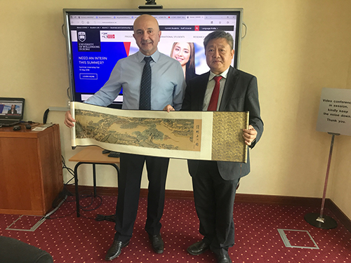 Khalid Hussain教授对王校长一行表示热烈欢迎,介绍了卧龙岗大学的基本情况,特别是工商管理硕士的培养概况,该专业在澳洲MBA排名第一。