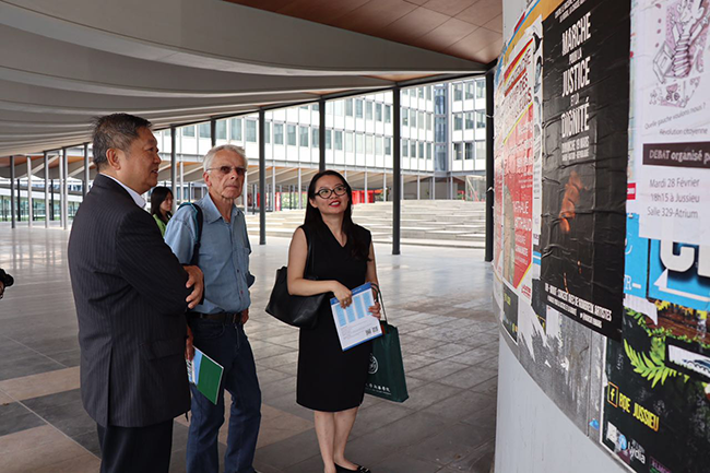 参观过程中,王校长与Rudler教授相互交流关于中法高等教育在人才培养与管理中各自的特色与优势。王校长说道,法国巴黎大学是世界上十所最早的大学之一,也被称为世界大学之母,历史悠久。在漫长的历史发展中,法国巴黎大学一直秉承开放包容、求真求知的教育宗旨,与时俱进,培养出每个时代国家与社会需要的人才,既坚持高端科研发展又紧跟世界步伐,是值得我校学习的世界级优秀楷模高校。此次到访法国巴黎大学,我校代表领略并学习到了先进的高校教育管理与大学建设设计的理念和做法,吸取了优秀经验为我校所用;同时,通过此行建立起彼此之间友好关系,为日后双方合作交流奠定基础。