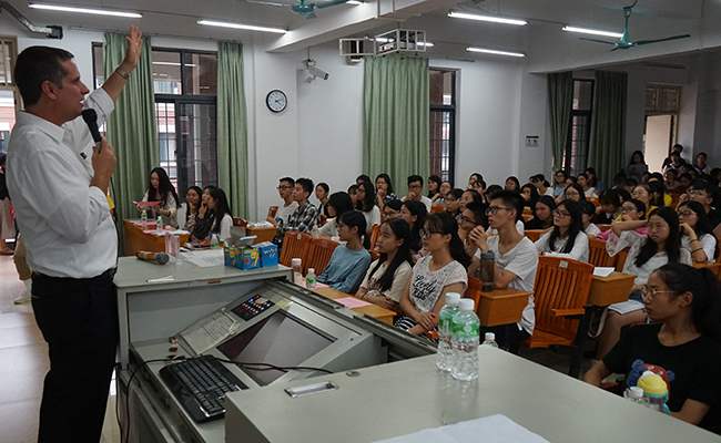 当天下午,Brian副教务长为我校师生作了主题为“全球化背景下复合型人才的需求与培养”的讲座。来自全校各院系的百余名学生认真聆听了此次讲座。